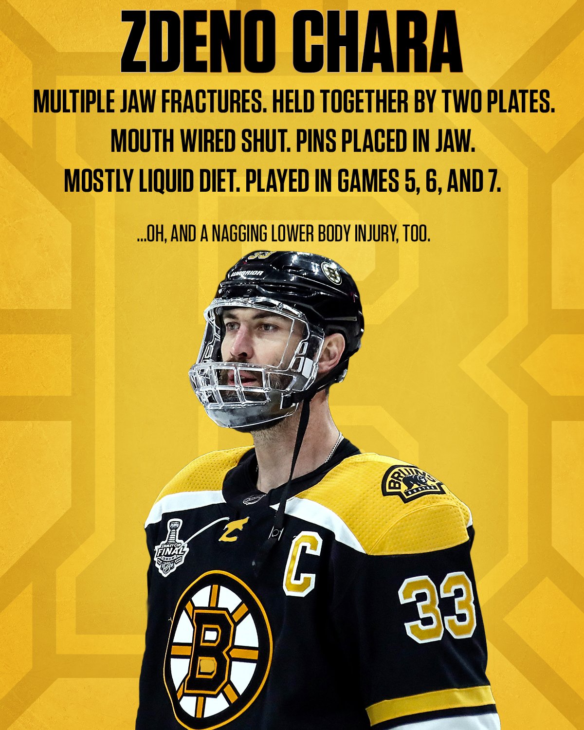 Bergeron david krejci david backes trent frederic kevan miller noel Acciari chris wagner sean kuraly charlie coyle matt grzelcyk zdeno chara anders bjork jack studnicka tuukka rask. He was a guy he could take advantage of and you look at his how his game has changed over the years. Congratulations to this weeks Meme King winner s who win the Meme King flair for the week. FANstránka nášho kapitána ----- neOfficalna stránka. Create your own Chara meme using our quick meme generator. Zdeno Chara who will face the Boston Bruins in the playoffs for the first time in his career will become the seventh player in NHL history to appear in a playoff game at age 44 or older. One roughly 15-feet tall the other with a mustache that is beautiful its illegal in 46 states. 25022021 zdeno charas wife tatiana biskupicová. Undertale - Zdeno Chara.